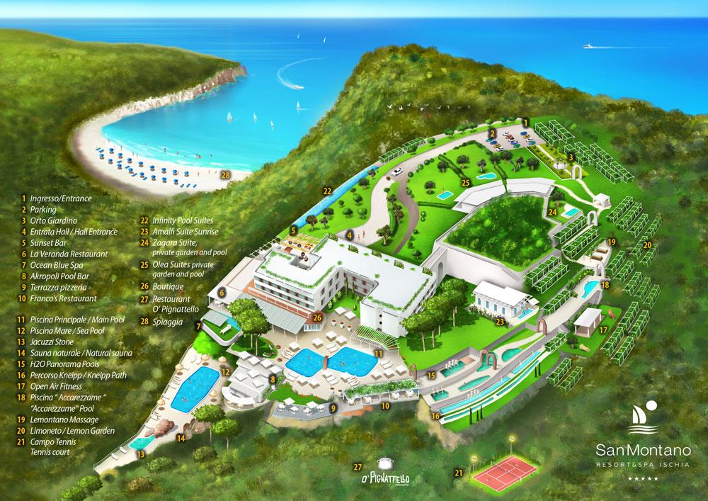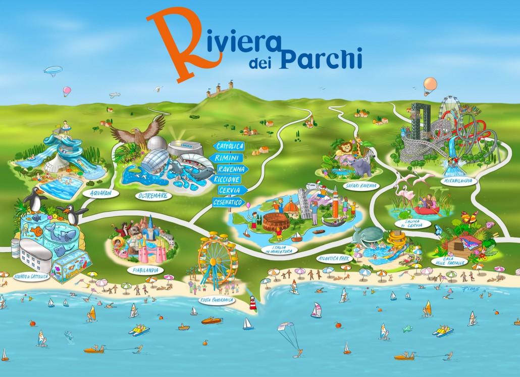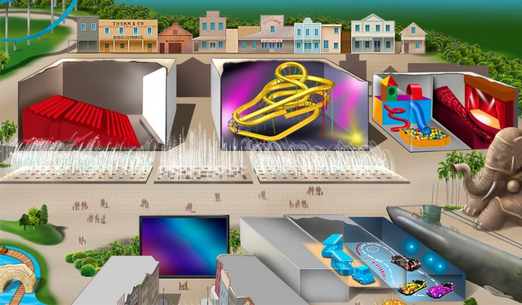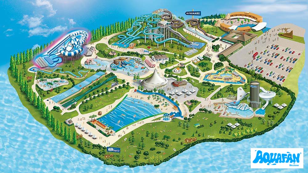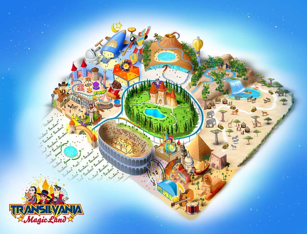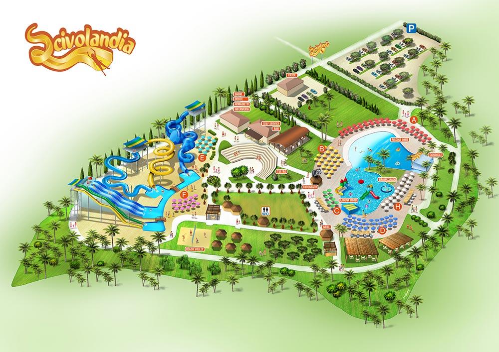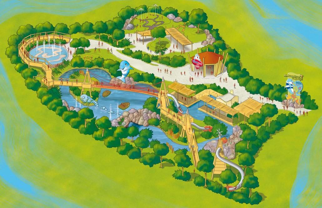 It shows all the services and attractions of the theme park, adventure park or facility in an attractive and detailed way.