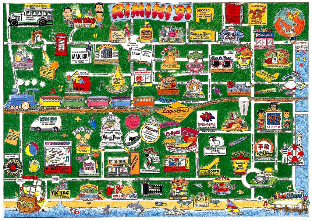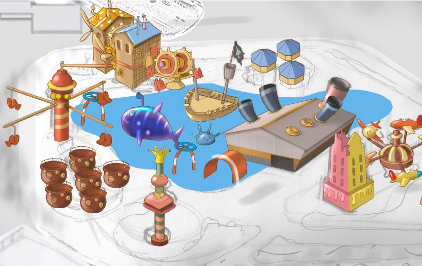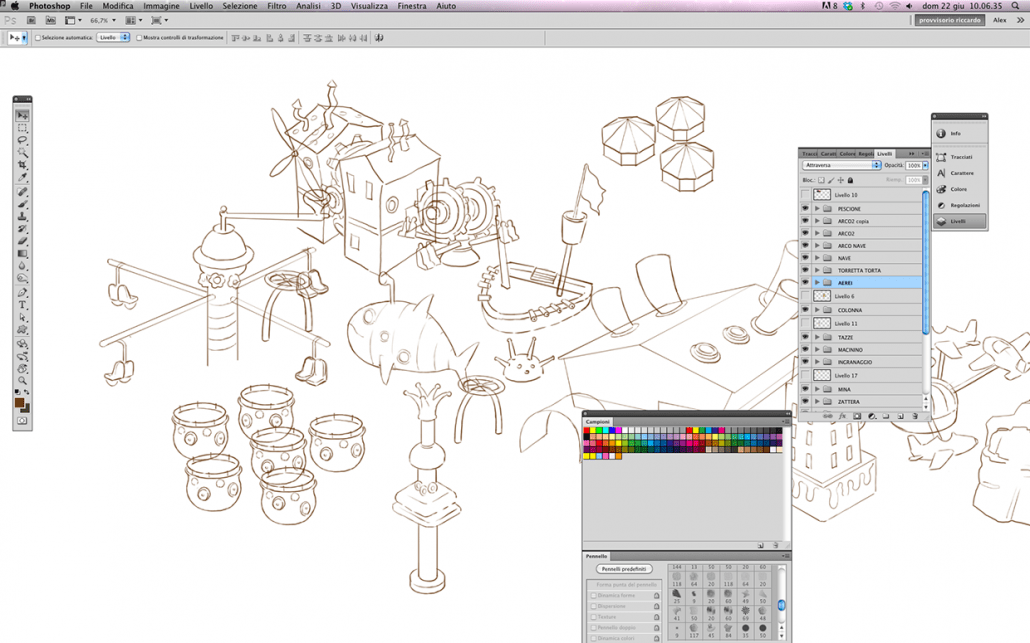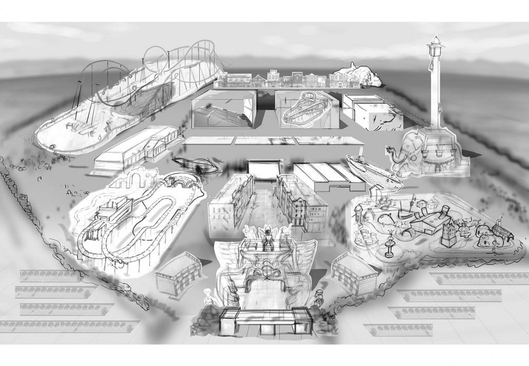 The making of the illustration will be carried out digitally and on levels to allow, even when the illustration is completed, to practice interventions without this implying a total remaking (think about the possibility of adding new attractions, modifying or eliminating existing ones, creating close ups of the single attractions.