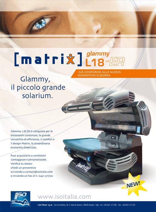 Presentare il nuovo solarium Matrix Glammy, facendone risaltare le doti specifiche e il vantaggio competitivo della compattezza e delle sua ridotte dimensioni.