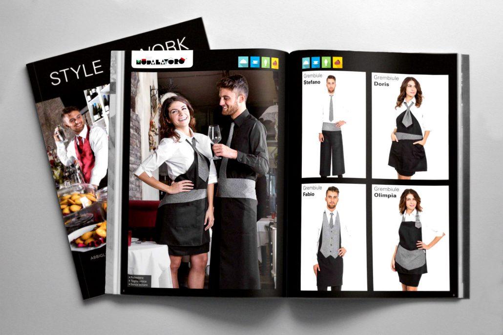 Realizzare shooting e catalogo multilingua per collezione abbigliamento professionale e divise da lavoro per il canale HORECA. Obiettivo del catalogo, oltre a presentare i capi e valorizzare i dettagli e le finiture della nuova collezione, consiste nello spostare il posizionamento dei capi da prodotto da lavoro a indumento moda, con personalità, stile, fashion del Made in Italy, illustrando il processo creativo della progettazione personalizzata su misura, la ricerca accurata dei tessuti, la cura dei particolari.