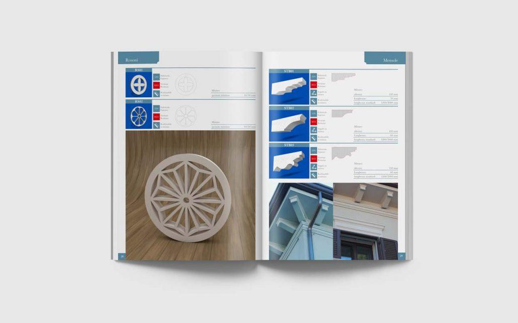 Realizzare un catalogo tecnico per illustrare le decorazioni architettoniche in polistirolo per esterni, per architettura interna, scenografie e materiale pubblicitario, le caratteristiche tecniche e specificità di ogni singolo prodotto.