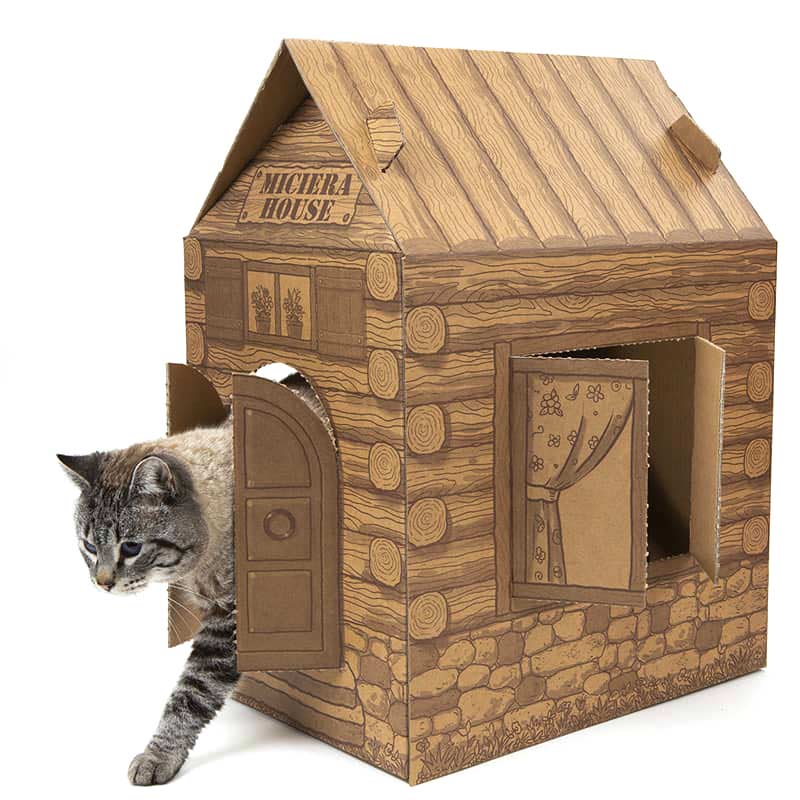 Miciera House, la casetta giocattolo per il gatto, nasce come pratico contenitore per chi acquista una serie di confezioni di Miciera Wc Box, la lettiera portatile progettata da noi e stampata a un colore. Agenzia Piras ha realizzato il progetto grafico e collaborato alla realizzazione del tracciato fustella e al totale progetto di cartotecnica per la realizzazione finale dell’originale packaging decorato con illustrazioni originali.