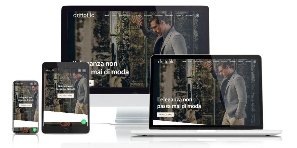 Realizzazione di e-commerce per Drittofilo Store, negozio di abbigliamento nella Repubblica di San Marino, vendita al dettaglio di note marche e specializzato nella creazione di abiti e camicie sartoriali personalizzate con solo prodotti di elevata qualità da sartorie e brand di eccellenza.