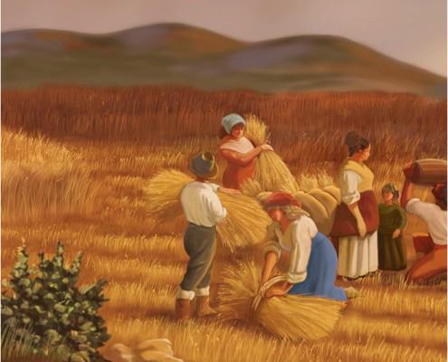 Illustrazione digitale che ricrea una scena di mietitura ottocentesca. Gesti, abbigliamento, ambienti ed atmosfere creati per fare rivivere una scena storica, un déjà vu, un amarcord – per dirla alla romagnola – del nostro immaginario che associa, in maniera emozionale, la tradizione e quindi la dimensione umana del prodotto e del marchio. L’illustrazione è scelta per rendere la comunicazione calda, avvolgente di atmosfera. Nel caso di Pasta Ghigi, storico pastificio di Romagna e stata usata e declinata per etichette, packaging e visual di annunci pubblicitari.