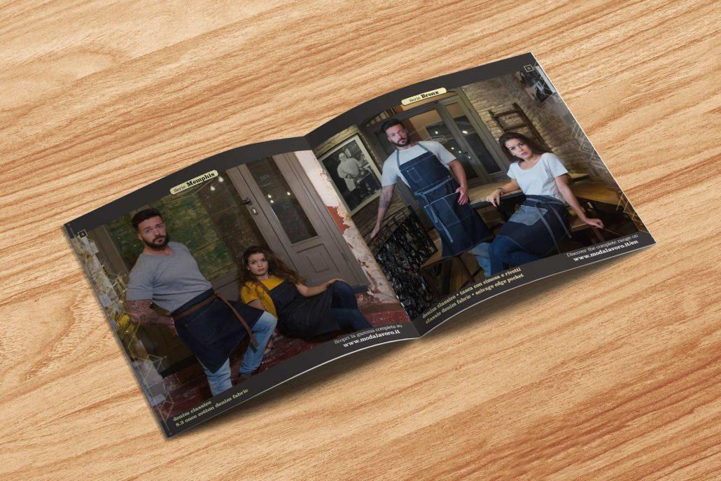 Oltre a presentare i capi e valorizzare i dettagli e le finiture della nuova collezione di abbigliamento professionale e divise da lavoro per il canale HORECA, la brochure riposiziona i capi proposti da prodotto da lavoro a indumento moda, con personalità, stile, fashion del Made in Italy, illustrando il processo creativo della progettazione personalizzata su misura, la ricerca accurata dei tessuti, la cura dei particolari.