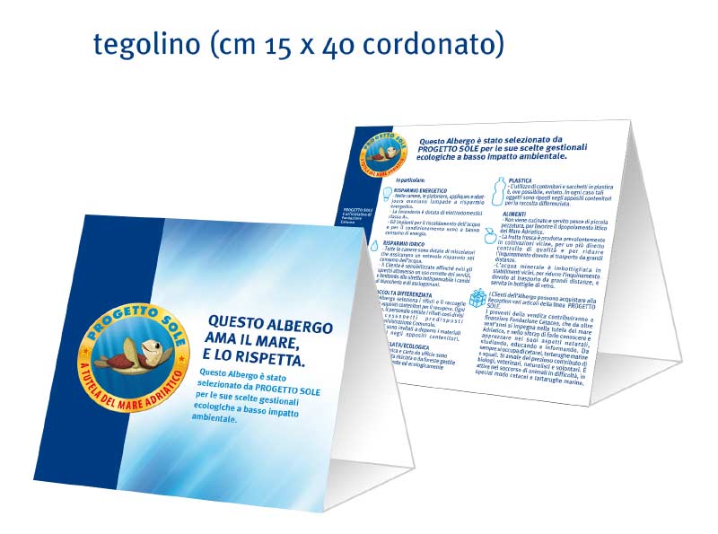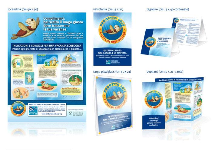 Nell’ambito del “Progetto Sole” volto a coinvolgere gli operatori turistici al rispetto dell’ambiente in generale e dell’ecosistema marino in particolare, sono stati creati materiali destinati alla esposizione nelle strutture aderenti all’iniziativa per sensibilizzare i turisti ad avere un comportamento e a rispettare le buone pratiche per una vacanza attenta all’ambiente e al mare. Una comunicazione simpatica e suggestiva realizzata con la creazione di una mascotte e illustrazioni esplicative.