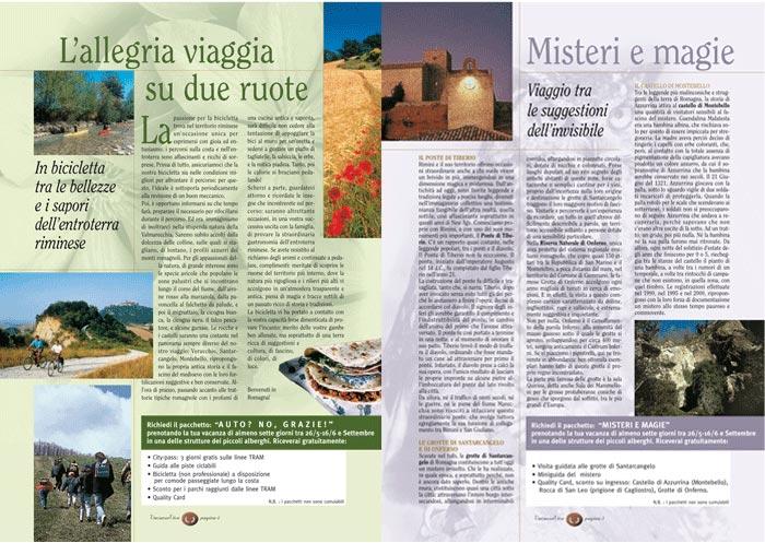 Rivista sfogliabile realizzata con l’obiettivo di promuovere Rimini e il suo territorio con una proposta turistica alternativa e ricercata, orientata alla valorizzazione dei percorsi storici e culturali, enogastronomici, riscoperta di borghi, territori, tradizioni, marineria, artigianato tipico per una offerta turistica innovativa, qualificata ed ecosostenibile.