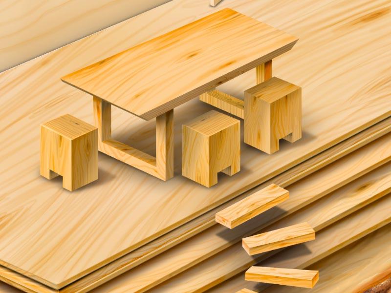 Wood evolution: l’evoluzione del legno, o in questo caso dal legno. In fase di briefing l’idea era quella di illustrare come dalla materia prima potesse nascere il prodotto lavorato e finito. Una sorta di processo evolutivo nel quale prende parte la mano dell’uomo pur non vedendosi. E’ così che dalla scala evolutiva iniziale si dipanano una serie di manufatti artigianali fino a completare con una unica immagine un ambiente totalmente realizzato in legno. Dal semplice tronco, che rimane alla base dell’illustrazione, ai vari accessori di un arredamento completo.